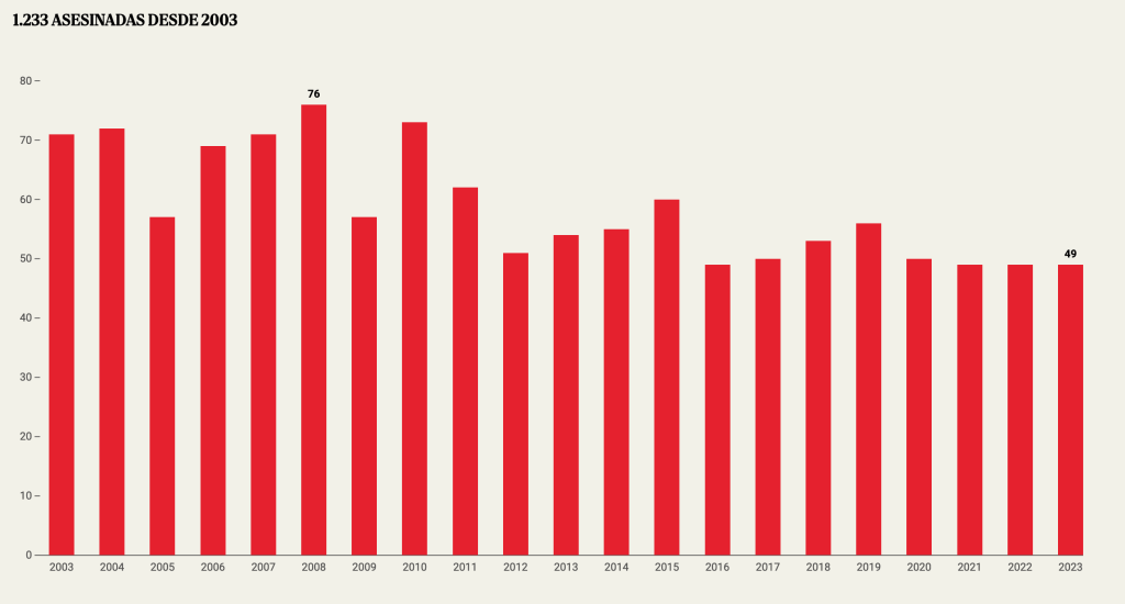 Ist es aber auch eine inhaltlich abgegrenzte Welle? Unterscheidet sie denn etwas von den üblicherweise genannten Charakteristika der feministischen Wellen? Dazu müsste zunächst einmal bestimmt werden, was den spanischen Feminismus angetrieben und ausgezeichnet hat, und wie er sich gegenüber anderen feministischen Wellen verhält. Die Ursprünge dieser spanischen Massenmobilisierung reichen weit zurück, bis in das Jahr 1997, als Ana Orantes bei lebendigem Leibe durch ihren ehemaligen Ehemann verbrannt worden ist, nachdem sie zwei Wochen vorher im Fernsehen schilderte, wie er sie 40 Jahre der Ehe über geschlagen und bedroht hatte.1 Diese beispiellose, ins bizarr terroristische übergehende Zuspitzung machistischer Gewalt entfachte ein allgemeines gesellschaftliches Umdenken, die staatlichen und privaten Fernsehsender im ganzen Land begannen, regelmäßig die Zahlen zur machistischen Gewalt in Spanien zu veröffentlichen, von der häuslichen Gewalt bis hin zum Mord. Dies, zusammen mit der Arbeit vieler Organisationen, Journalisten und Aktivisten, enfachte nach und nach die Welle des Feminismus in Spanien, die bis zum Jahr 2019 immer mehr Menschen mobilisieren konnte. Diese enorme Mobilisierungswelle ist wahrscheinlich auch auf den Aufstieg einer neuen rechten Kraft in Spanien zurückzuführen, der erklärt antifeministischen Partei Vox, die wie viele andere neu-rechte Parteien in dieser Zeit stark wurde, im Gegensatz zu anderen Ländern (wie etwa Italien, Deutschland, England, USA) aber in Spanien (auch durch den Feminismus) in (zumindest bis jetzt) die Schranken gewiesen werden konnte. Nach 2019, als Corona begann und die Welt in Quarantäne hielt – in Spanien mit besonders vielen tragischen Toten, gerade auch durch den Weltfrauentag 2020 spaltete die Bewegung sich auf und hatte sich abgeschwächt, zumindest wenn die Zahlen der Teilnehmer der Demonstrationen betrachtet werden. Deutlich ist aber, dass die Zahl der Femizide in Spanien abgenommen hatte, ob nun durch diesen Feminismus oder nicht, sei dahingestellt, gegen 2008 gab es mit 76 Morden den Höhepunkt, danach nahm diese Zahl konstant ab. Sie ähneln inzwischen der Anzahl der Femizide in Deutschland (im Verhältnis zur Bevölkerung).